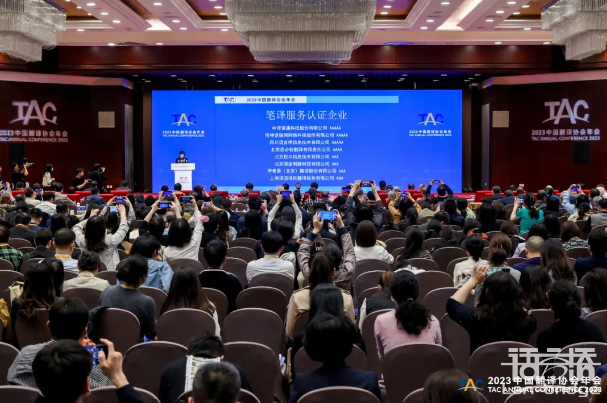 2023年4月3日,由中國外文局指導,中國翻譯協會主辦“2023中國翻譯協會年會”在北京國際會議中心開幕。會議期間發布了《2023中國翻譯及語言服務行業發展報告》《2023全球翻譯及語言服務行業發展報告》,并進行了翻譯服務認證企業授牌暨《口譯服務認證要求》發布。