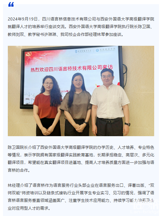 深化翻譯教育合作:西安外國(guó)語(yǔ)大學(xué)與語(yǔ)言橋開(kāi)展座談交流
