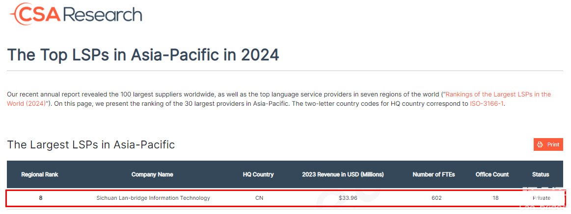 語(yǔ)言橋2024 CSA亞太地區(qū)排名