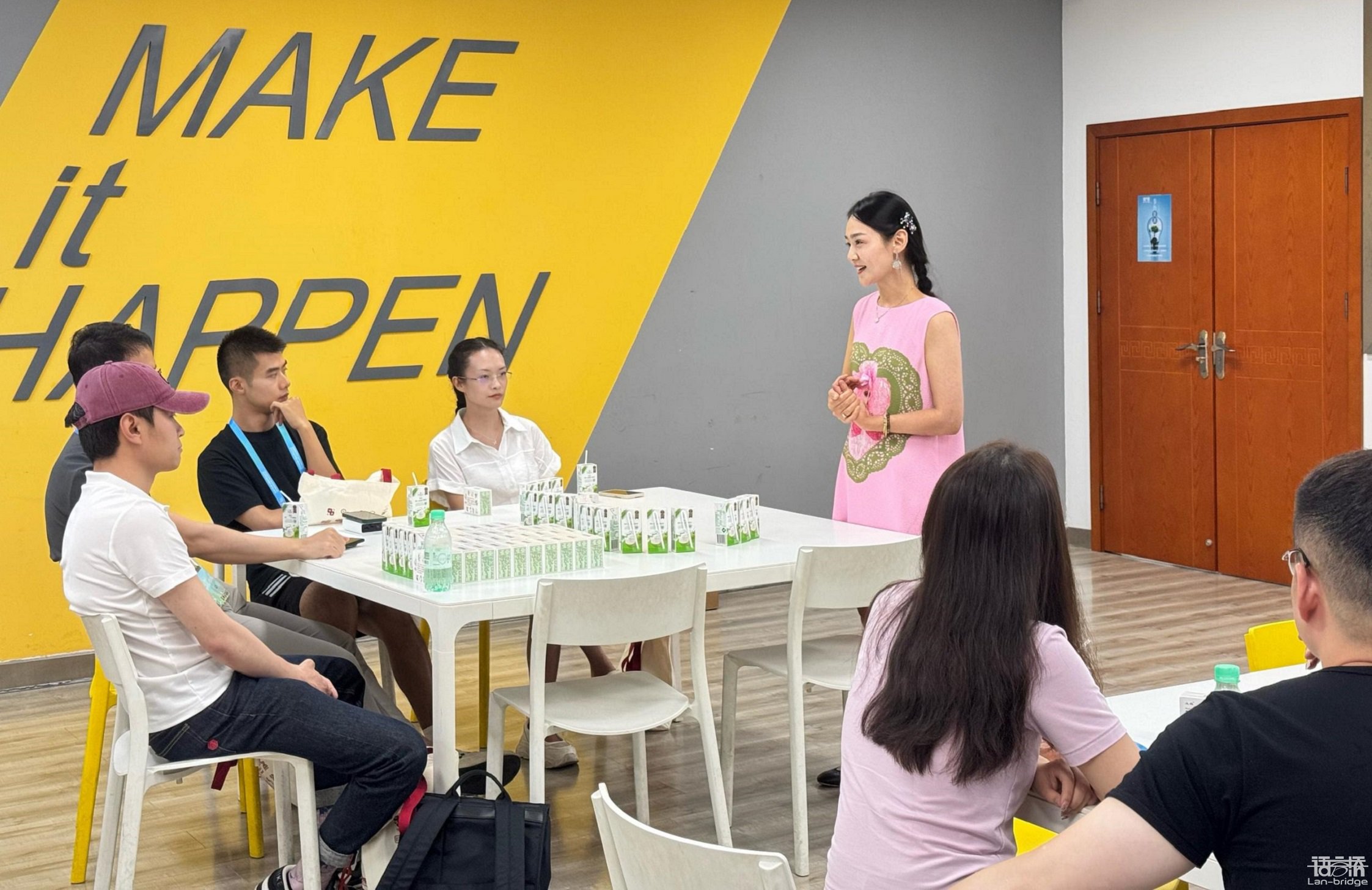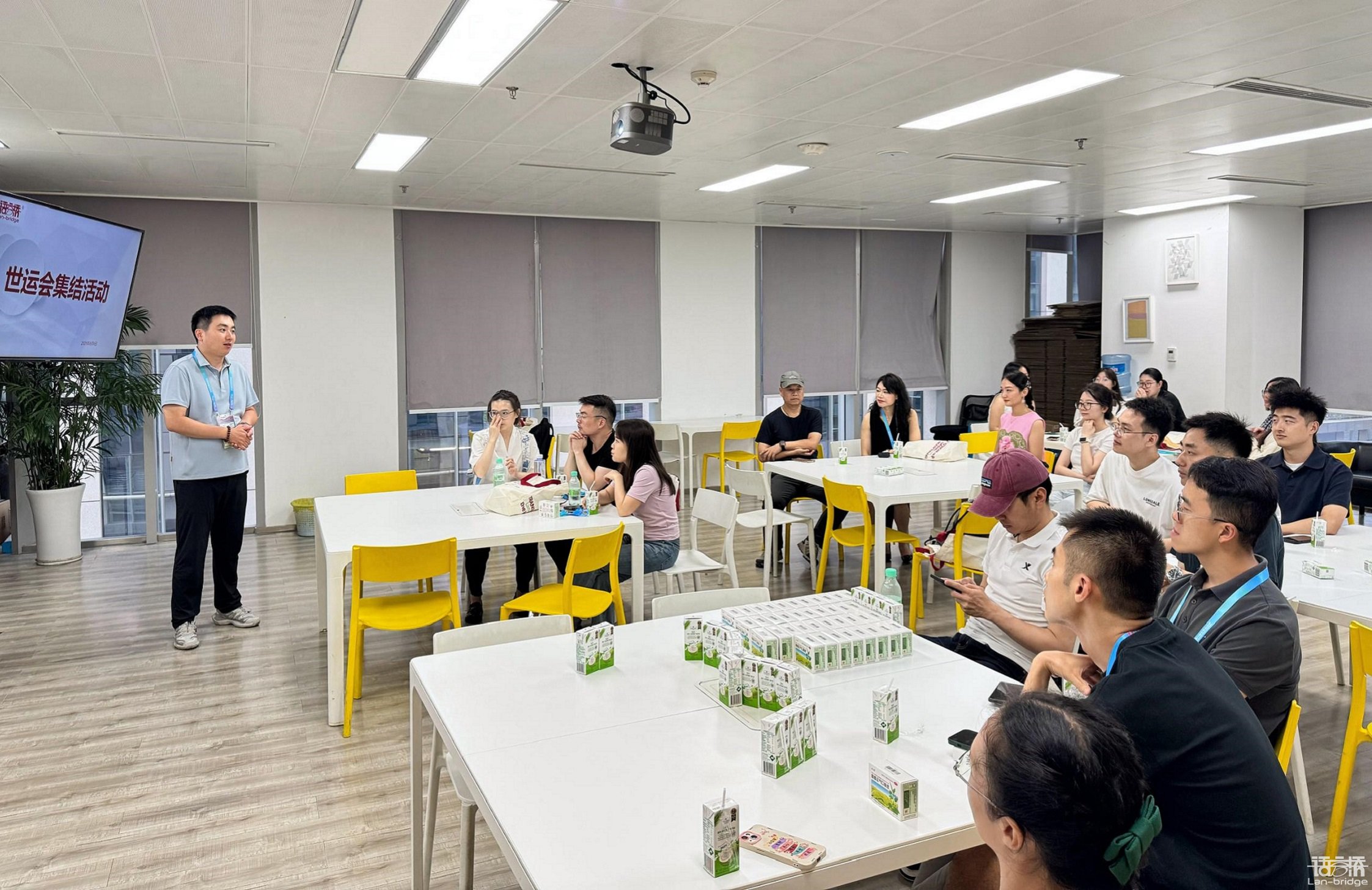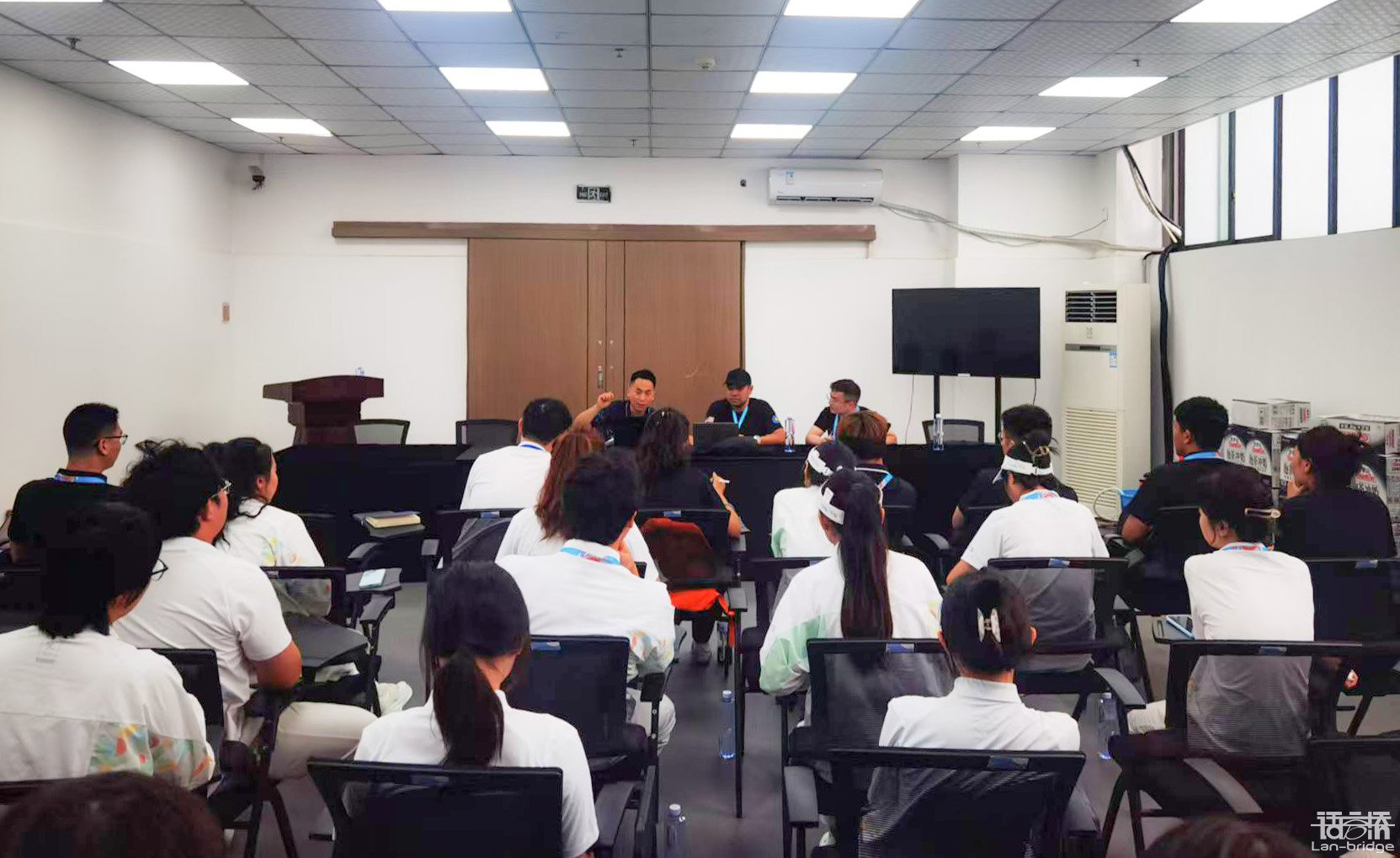 在細(xì)致的專業(yè)準(zhǔn)備背后,是語言橋?qū)ψg員團(tuán)隊(duì)的暖心關(guān)懷。考慮到成都8月的酷暑天氣,語言橋也特別為每位譯員老師準(zhǔn)備了清熱解暑的藿香正氣水,以及實(shí)用貼心的語言橋?qū)俣Y包——定制筆記本、晴雨傘、保溫杯一應(yīng)俱全。賽事專家何海交老師和大會(huì)展事業(yè)部負(fù)責(zé)人朱曼曼、朱亮,分別與譯員團(tuán)隊(duì)進(jìn)行了細(xì)致的賽前宣講,就服務(wù)流程、注意事項(xiàng)等關(guān)鍵細(xì)節(jié)進(jìn)行了專業(yè)指導(dǎo)和溫馨叮囑。